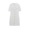 Gestrickte einreihige Sommer gefälschte Tasche O-Ausschnitt Kurzarm A-Linie weiß Büro Dame Minikleider