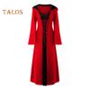 Cosplay-Kleid für Damen im dunklen Stil, Halloween-Party, Hexenkostüm, Schnürriemen, Kapuze, farblich passende lange Hornärmel, A-Linie, Performance-Kleid