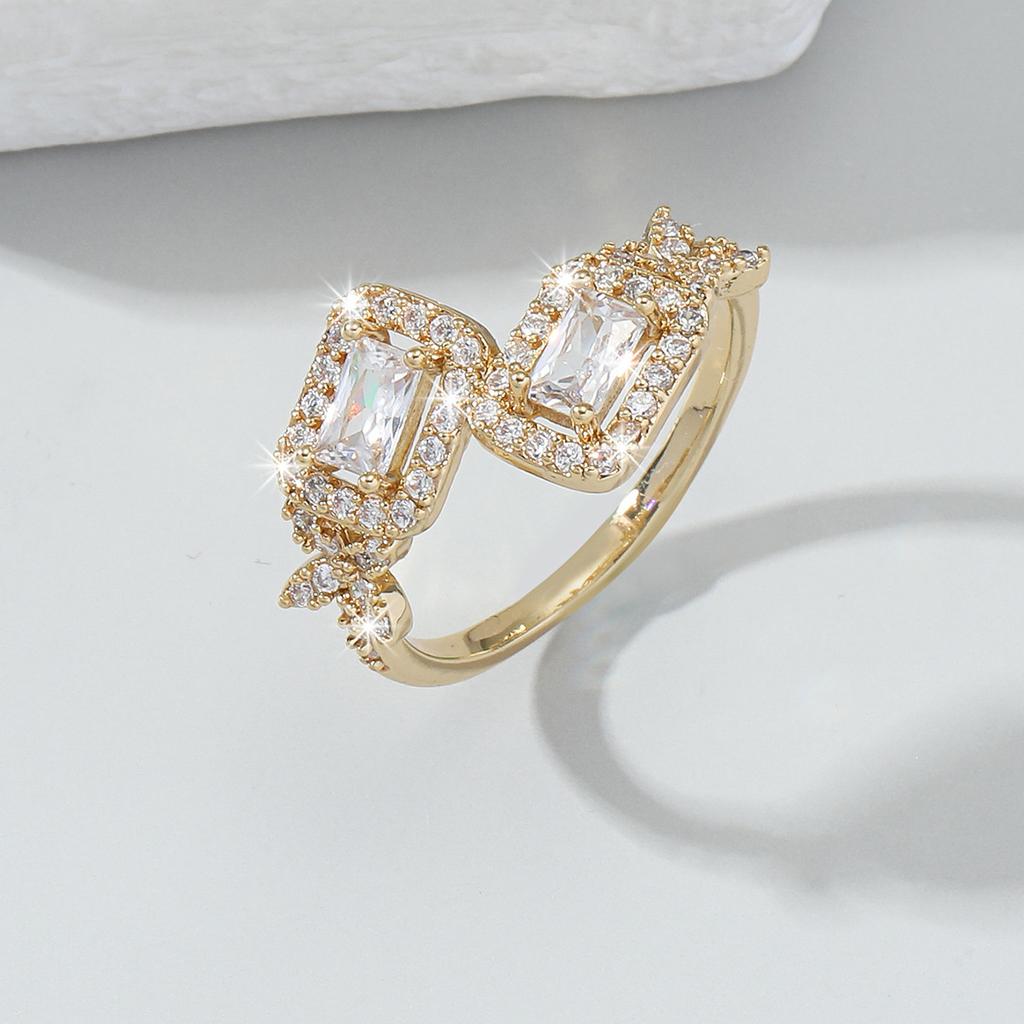 GemChic Women's Ring Exquisite Water Drops Square Ring Female Opening Adjustable Embed Zircon Ring Birthday Christmas Jewelry Gift
