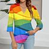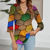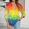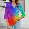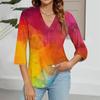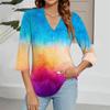 Modisches Oberteil mit V-Ausschnitt, Farbverlauf-Print und Dreiviertelärmeln für Damen