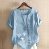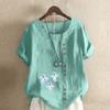 Damenmode Rundhals Kurzarm T-Shirt Lässiges Baumwollleinen Grafikhemd Freizeit Lose Geister Druck Gedruckte Sommerbluse Tops