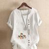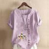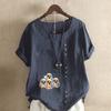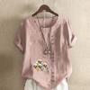 Damenmode Rundhals Kurzarm T-Shirt Lässiges Baumwoll-Leinen-Grafikhemd Freizeit Lose Geister Gedruckt Sommer Bluse Tops