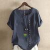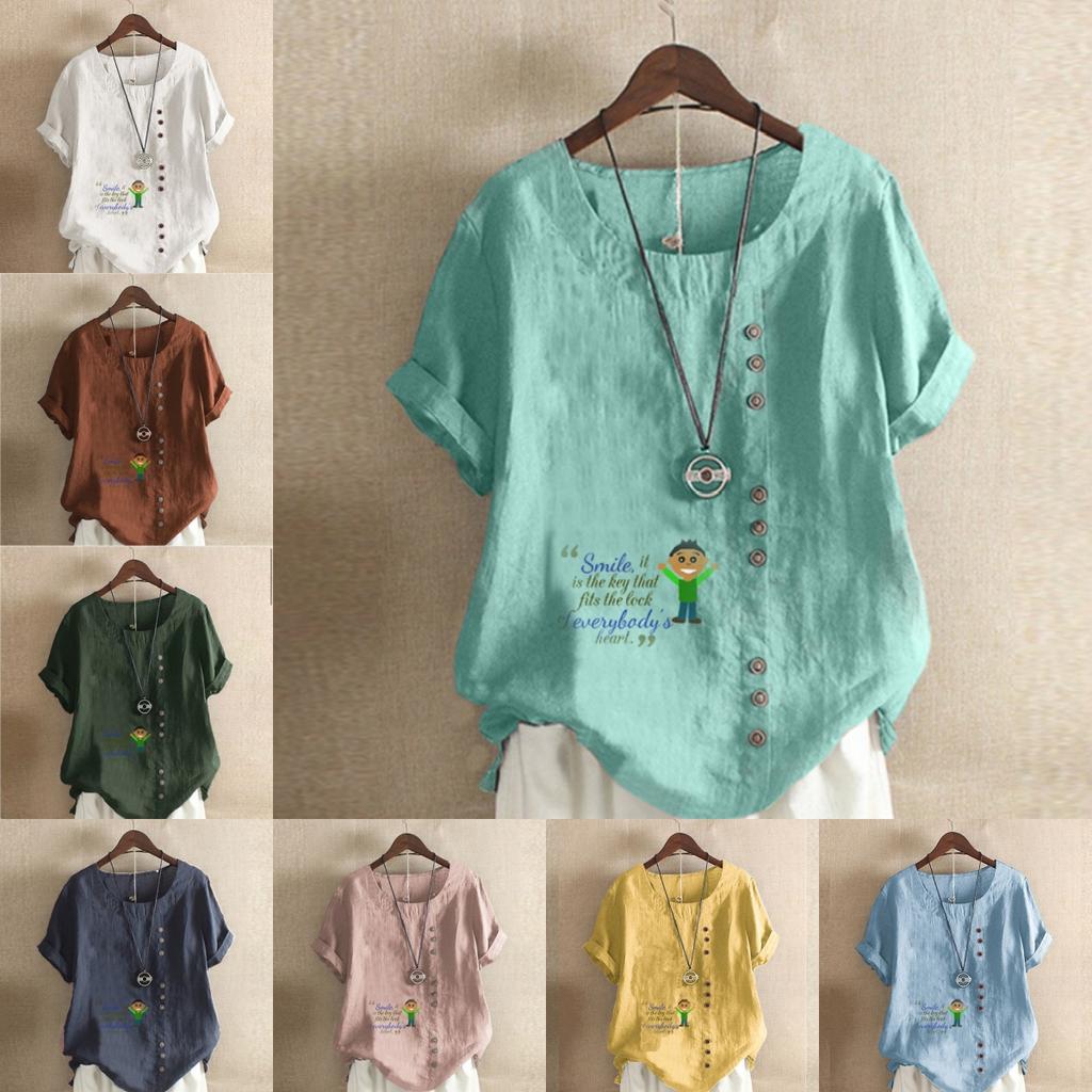 Damenmode Rundhals Kurzarm T-Shirt Lässiges Baumwollleinen Grafikhemd Freizeit Lose Buchstaben Gedruckt Sommer Bluse Tops