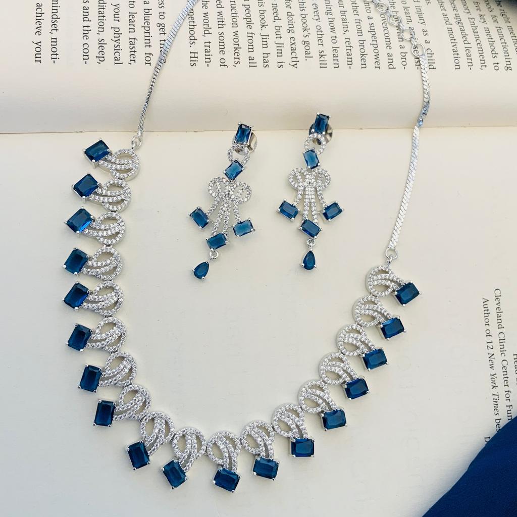 Versilbertes, rundes Diamant-Halsketten-Set mit Diamanten für Damen