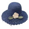 Strandhut für Damen, handgewebter Sonnenhut mit Blumenmuster, breiter Krempe, UV-Schutz, faltbare Häkel-Strohkappe für Strandreisen im Sommer