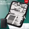 16-teiliges Maniküre-Set mit Etui aus Kunstleder, flacher, schräger Nagelknipser, Augenbrauenschere, Nagelfeilenreiniger, Ohrstöpsel, tragbare Pediküre aus Karbonstahl