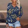 Damenmode, lässig, langärmelig, Blumendruck, V-Ausschnitt, Knopfleiste