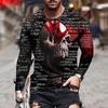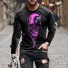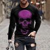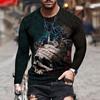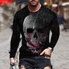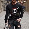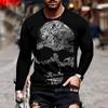 O-Ausschnitt Langarm T-Shirt in Übergröße Herrenbekleidung Retro Herren Langarm T-Shirt 3D-Druck Totenkopf Langes T-Shirt Herren Street