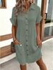 V-Kragen, einfarbiges Kleid mit Knöpfen, hohe Taille, elegantes Hemdblusenkleid für Damen, kurzärmelige, lockere Kleider, lässiges Kleid