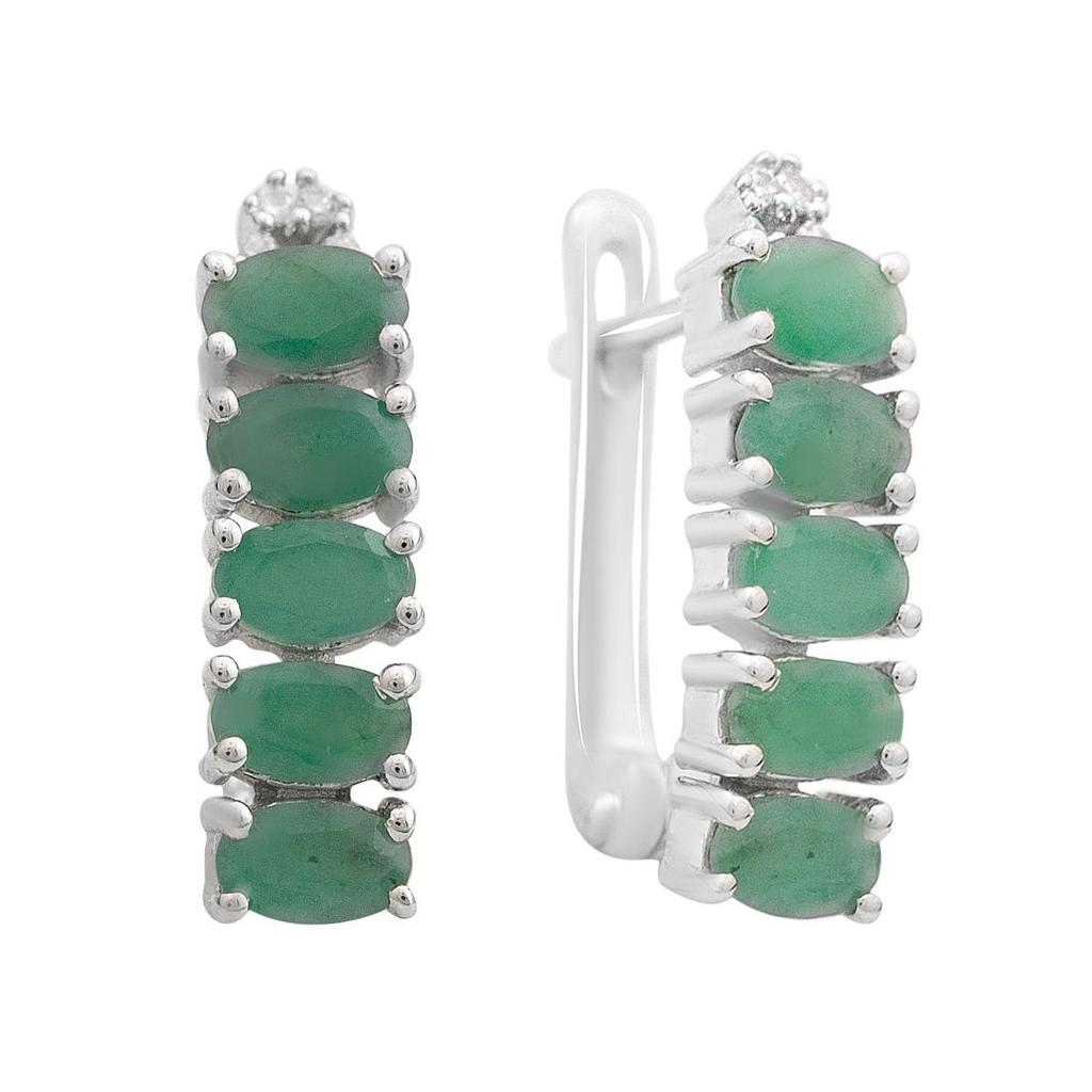 Silberohrringe mit natürlichem Smaragd und Zirkonia (2161981)