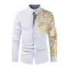 Herren Businesshemden Herren Hemd Casual Streetwear Schwarz Goldprägung Bedrucktes Hemddesign Umlegekragen Männliche Oberteile