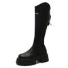Damen Kniehohe Stiefel Neue Herbst-Winter-Schuhe Frau Lange Stiefel Slip-On Lässig Klobiger Absatz Plateau-Stiefel
