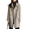 Damenjacke Umlegekragen Lange Ärmel Zweireihiger Windbreaker Lockere Taschen Mittellanger Mantel für Outdoor-Reisen