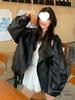 Herbst Amerika Chic Vintage Kurze Jacke Frauen Retro High Street Lange Ärmel Leder Mantel Fashion Zipper Hoodie Stil Oberbekleidung