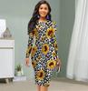 Langarm Taille Eng Büro Slim Fit Leopardenmuster Druck Elegantes Bodycon Kleid