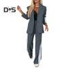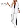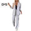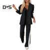 2-teiliges Set mit formellem Mantel und Hose für Damen, Umlegekragen, einreihig, lange Ärmel, Jacke, lockere, gestreifte Hose mit weitem Bein, lässige Alltagskleidung zum Pendeln