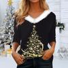 3/4-Ärmel-Shirts für Damen, weihnachtlich bedruckte Grafik-T-Shirts, Blusen, lässig, Übergröße, Basic-Oberteile mit Knopfleiste, Pullover