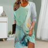 Damen Casual Dress Herbst Verschmieren Print Kleider für Frauen O-Ausschnitt Kurzarm Kleid Plus Größe