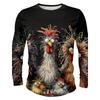 3D-gedrucktes Anime-Hühnermuster 3D-gedrucktes Herbst Herren Rundhals T-Shirt Lässig Langarm Übergroßer Pullover Mode Tops
