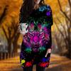 Neu Im Herbst Tiger Print Plus Größe Kleid Frauen Oansatz Lange Ärmeln Casual Tasche