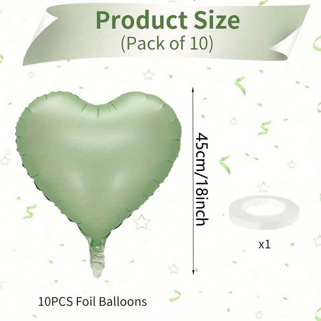 10 Stück 18-Zoll-Herzballons aus olivgrüner Aluminiumfolie mit grünem Thema, Geburtstags- und Hochzeitsdekoration