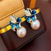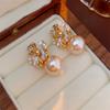 Fashion Diamond studded French flower pearl Stud Earrings for women's earrings Jewelry Girl Gift Brincos