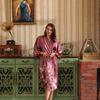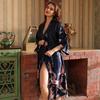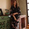Frühling Sommer Seide Pyjamas Weibliche Kran Druck Lange Sexy Komfortable Hause Nachthemd Lose Nachthemd