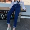 DIMANAF 2024 Herbst Frauen Jeans Hosen Hohe Taille Elastische Knöpfe Grundlegende Hose Blau Lange Hosen