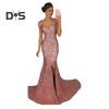 Abendkleid für Damen, tiefer V-Ausschnitt, geteilter Saum, Pailletten, schmaler Fischschwanzsaum, Reißverschluss auf der Rückseite, ärmellos, Abschlussball, Cocktailparty, bodenlanges Ballkleid
