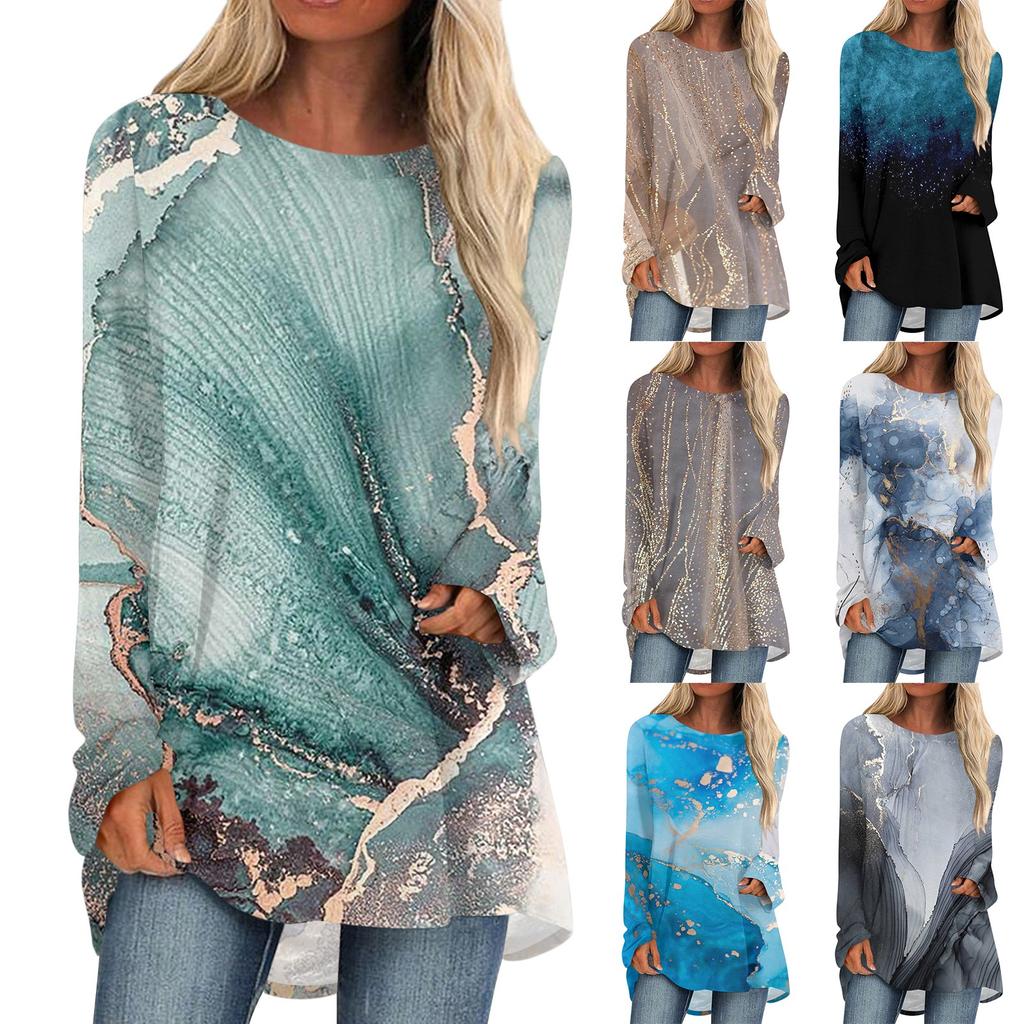 Modisches, lässiges, langärmliges T-Shirt mit Rundhalsausschnitt und Aufdruck für Damen in Übergröße