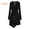 Damen Kurzes Kleid V-Ausschnitt Lange Ärmel Plissee Reine Farbe Slim Fit Etuikleid Unregelmäßiger Saum OL Pendeln Party Abschlussball Minikleid Abendveranstaltungen