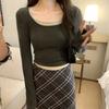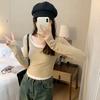 25/5000 Patchwork-T-Shirt für Damen mit quadratischem Ausschnitt, Pullover in Fake-Zweiteiler-Optik, Frühlingskontrast, altersreduzierende lange Ärmel