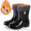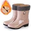 Regenstiefel Damenmode Outdoor Wasserdicht Rutschfest Küche Arbeit Gummischuhe Regenstiefel Winter Mid-Calf-Stil Warm