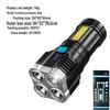 LED-Taschenlampen, 4 LEDs + Seitenlicht, 4 Modi, wiederaufladbare USB-Taschenlampe, integrierter Akku, Suchscheinwerfer mit großer Reichweite