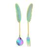2 Stücke Kaffeelöffel Dessertgabel Kreative Feder 304 Edelstahl Gabel Kuchen Obst Salat Besteck Dekoration Geschirr Geschenk Küche