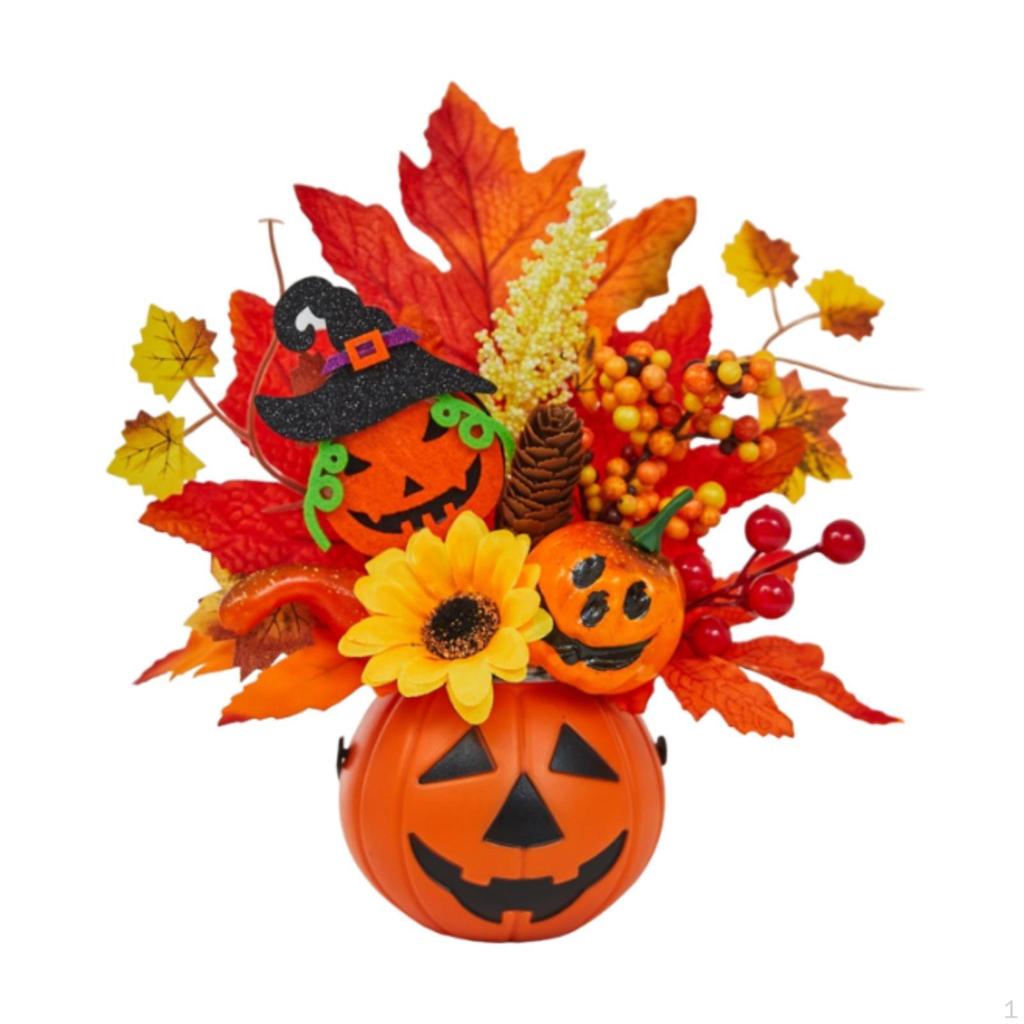 Künstlicher Kürbis Halloween Dekoration Tischaufsatz Ahornblätter Beerenblüten für Herbst