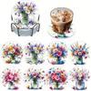 8-teiliges Set mit bestickten Untersetzern mit Blumen und Diamanten und Halter, DIY-Untersetzer für Anfänger und Erwachsene, Kunst- und Bastelbedarf, Geschenk