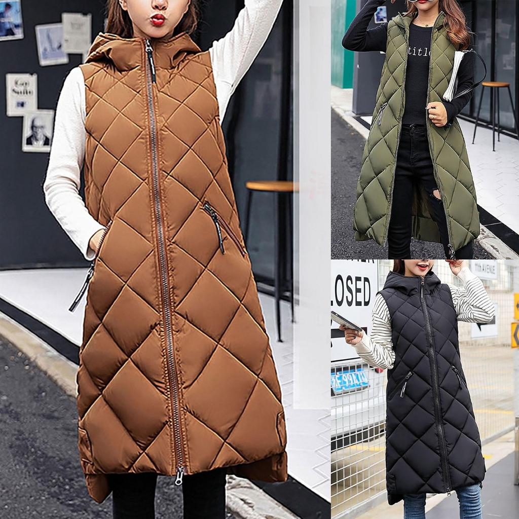 Warme Daunen-Kapuzenweste für Damen, leichte Steppweste, lockerer Reißverschluss, Outdoor-Weste