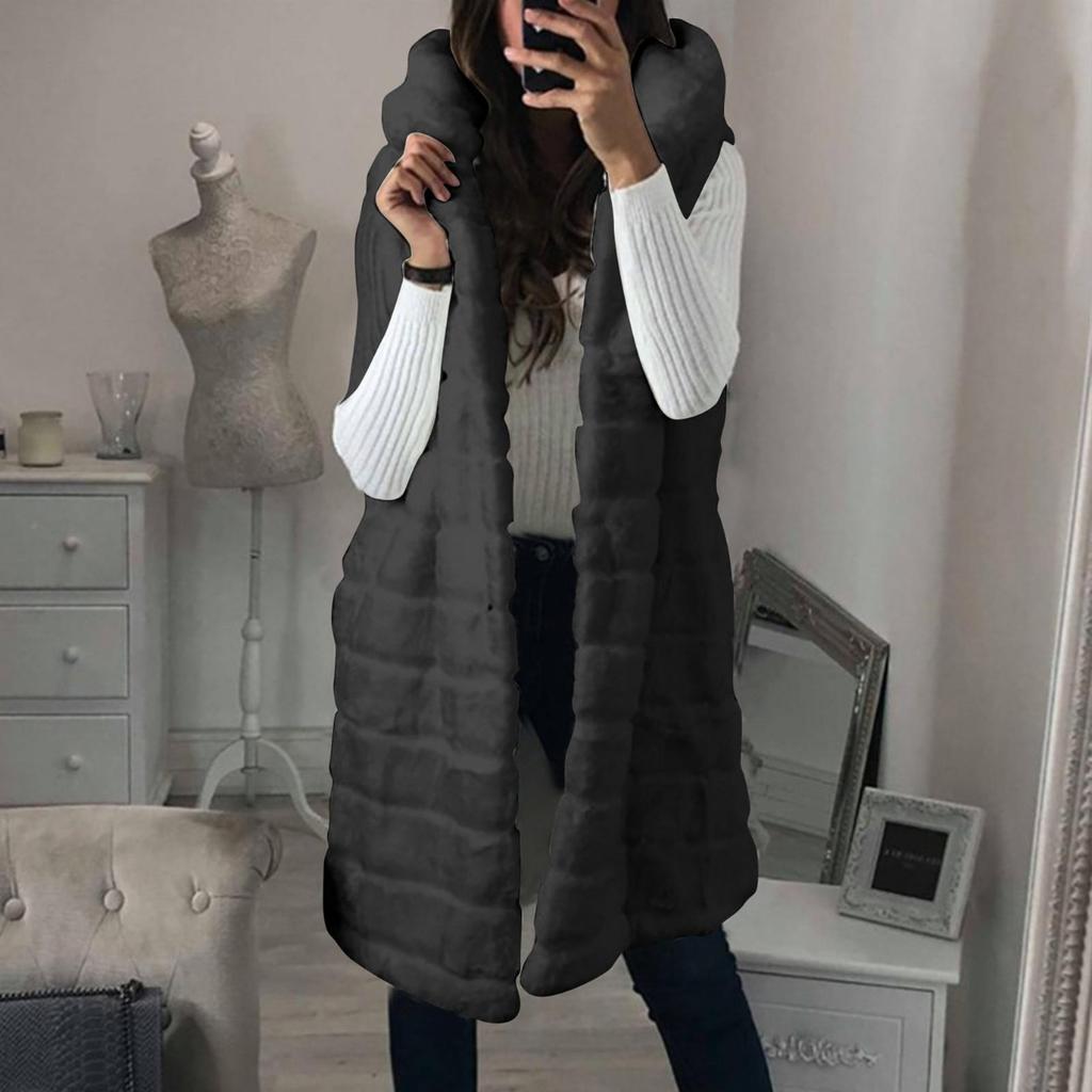 Damenmode Ärmellose Plüschweste Kunstpelz Kapuzenpullover Top Mantel Outwear