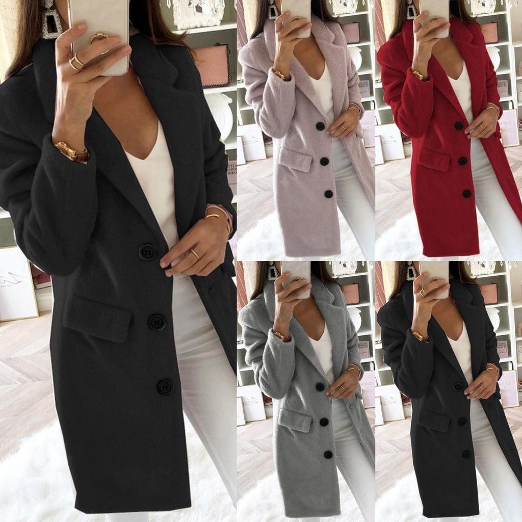 Frau Plüsch solide elegante Mischung Mantel schlanke Knöpfe lange Mantel Oberbekleidung Jacke