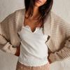 QICED Autumn and Winter Fashion V-neck Bat Sleeve Knitted Cardigan Sweater for Women
