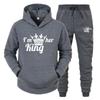 KING QUEEN Sweatshirt-Set für Damen und Herren, lässiges Sport-Set, zweiteiliges Jogginghosen-Set, Kurzarmshirts (Herren)