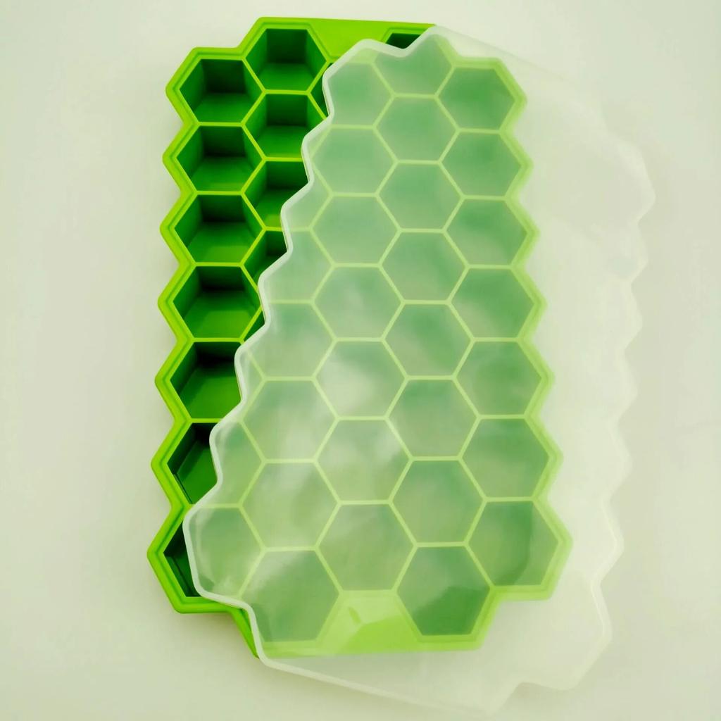 Silikon-Eisblockform 37 mit Abdeckung, Wabennetz, 37 stapelbare DIY-Eisform, wiederverwendbare Form in Lebensmittelqualität