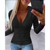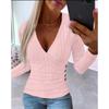 JPNTKY Damenmode Lässig Herbst Winter Einfarbig Druck Langarm V-Ausschnitt Blusen & Hemden