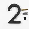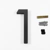 0–9 schwebende Hausnummer, Türschild, moderne Tür, Zuhause, draußen, schwarze Zahlen, Adressschild, Strich-Schrägstrich-Schild