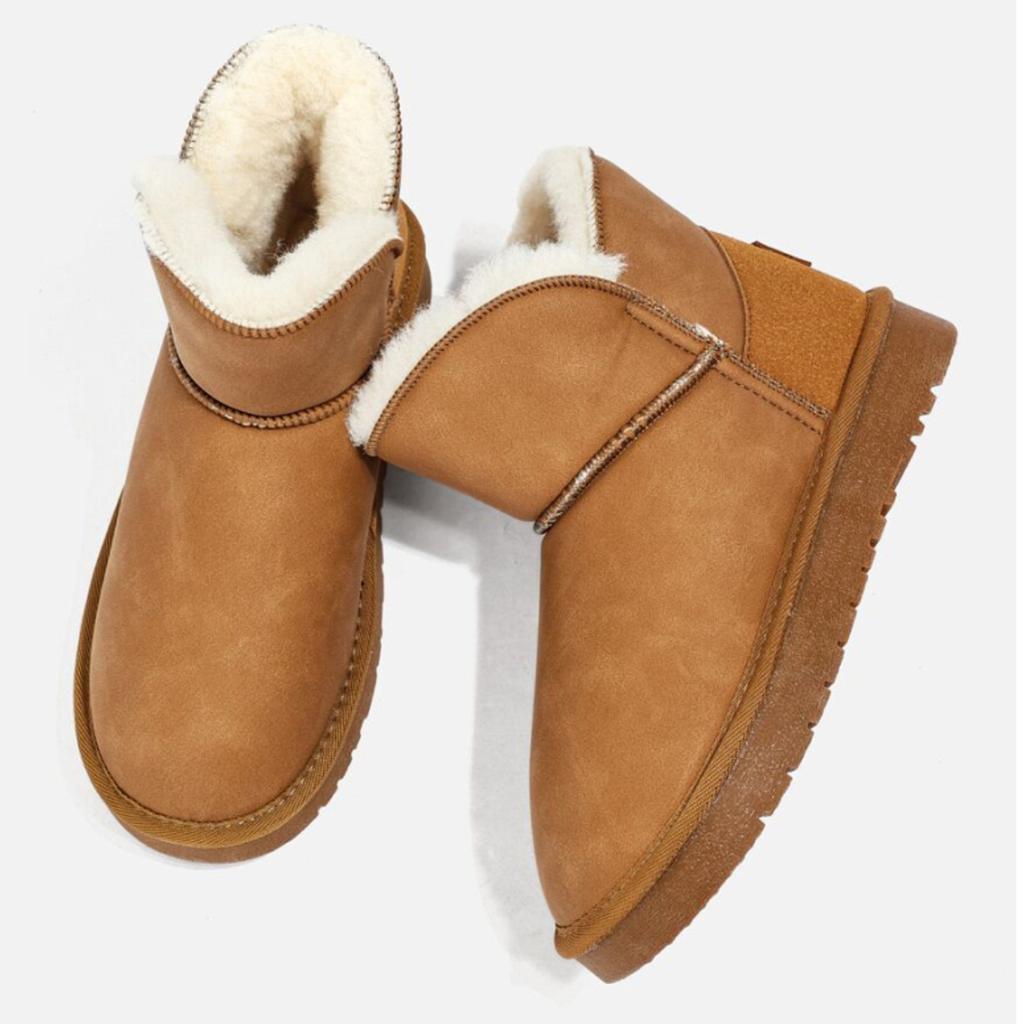 Damen Winter Schneestiefel mit Kunstfellfutter Plateau Kunstveloursleder Stiefeletten Chunky Warm Plüsch Schlupfstiefel Bequem Rutschfest Kurze Stiefeletten Schuhe für Damen
