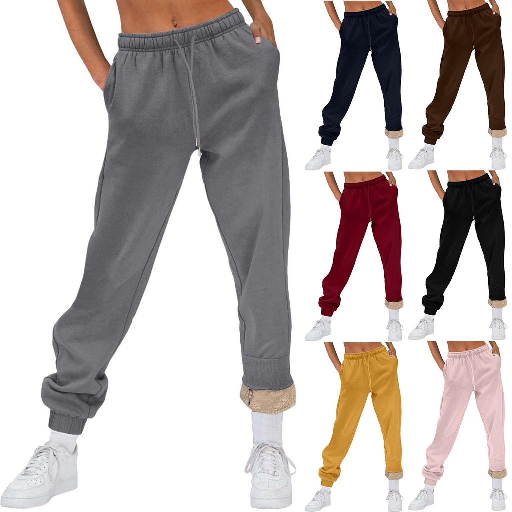 Damenmode Einfarbige Freizeithose Kordelzug Große Fleecehose Homewear Jogginghose