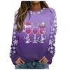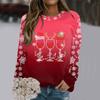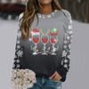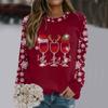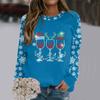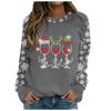 Weihnachts-Sweatshirt Weinglas Hut Schneeflocken-Print Pullover Herbst und Winter Rundhals Langarm Kapuzenlose Oberteile Lässiger Hoodie