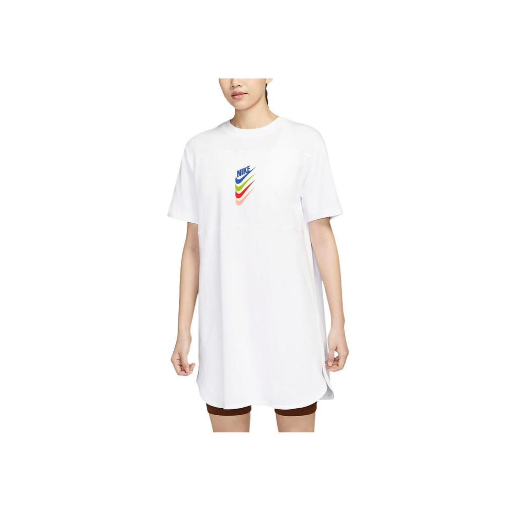 Nike Sportbekleidung Logo Layered Einfarbig A-Linien-Kleid Damenkleider Weiß DM6763-100