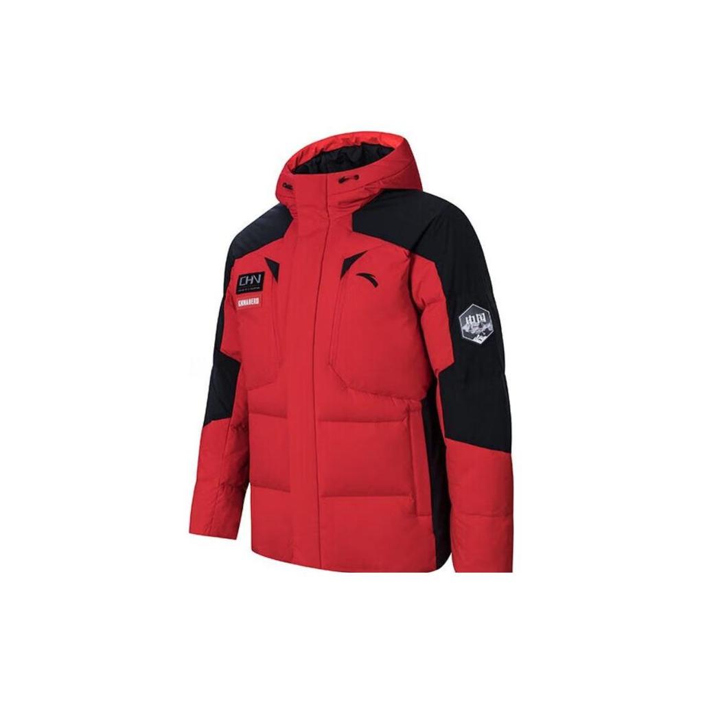 Anta Trainingsserie Buchstaben-Spleißung Reißverschluss Kapuzenjacke Dicke Lässige Daunenjacke Herren Oberbekleidung Klassisch-Rot 152347946-3